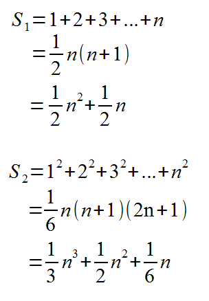 まず一乗和の公式と二乗和の公式を見てみてください。
